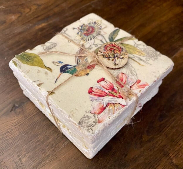 Coaster Craftsmen creates premium, handcrafted drink coasters from natural travertine stone, blending refined design with artisanal detail. Each set is carefully made using high quality decoupage and proprietary techniques, resulting in functional pieces that feel both elegant and timeless. We offer a curated collection of beautiful designs along with fully custom creations for weddings, wineries, boutique hotels, and meaningful personal moments. Our heavy duty coasters have cork backings to protect surfaces and are made with a special coating to resist heat and UV light, and will not stick to glassware and mugs. They are sure to elevate everyday gatherings and special occasions alike.